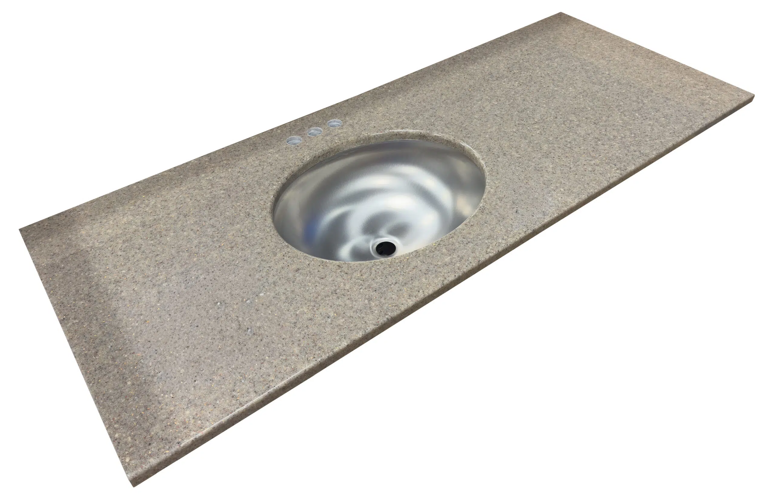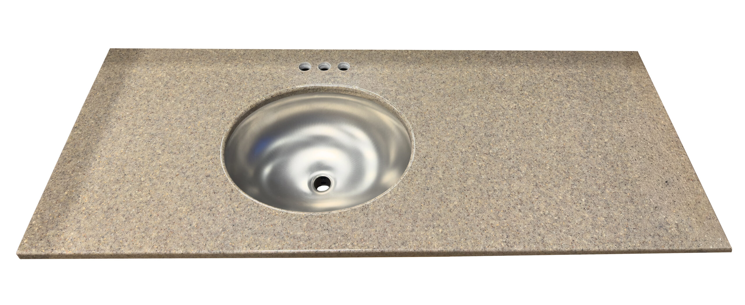 The bowl can be centered or offset, and the faucet holes can be drilled to meet your specifications. Multiple bowls are also available. Every vanity top is made to order and is made to your exact needs.