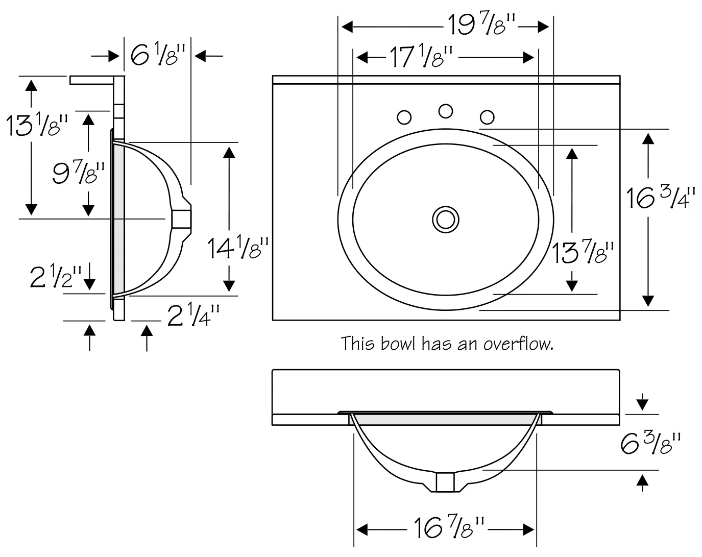Most cabinets are 18″ or 21″ deep. For 18″ deep vanity cabinets, we reco mend using our 19 1/2″ deep lavatory option, and for 21″ deep vanity cabinets, we recommend our 22 1/2″ deep lavatory option. We also offer lavatories in any custom depth you would prefer.