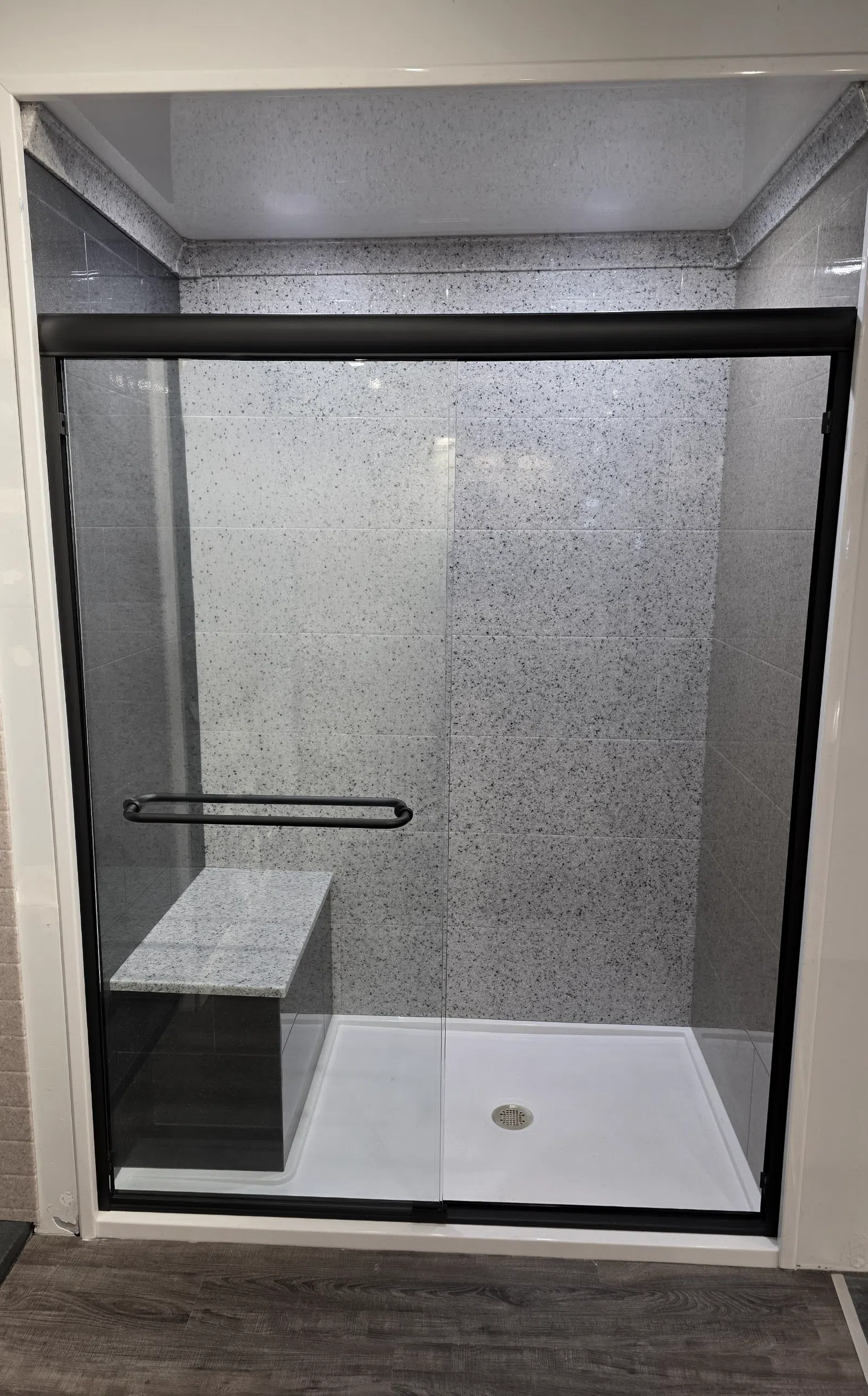 Onyx wall panels can also be used for bathtub walls. Shower Accessories – caddies, seats, and trim are available to match the Onyx shower wall panels and base.